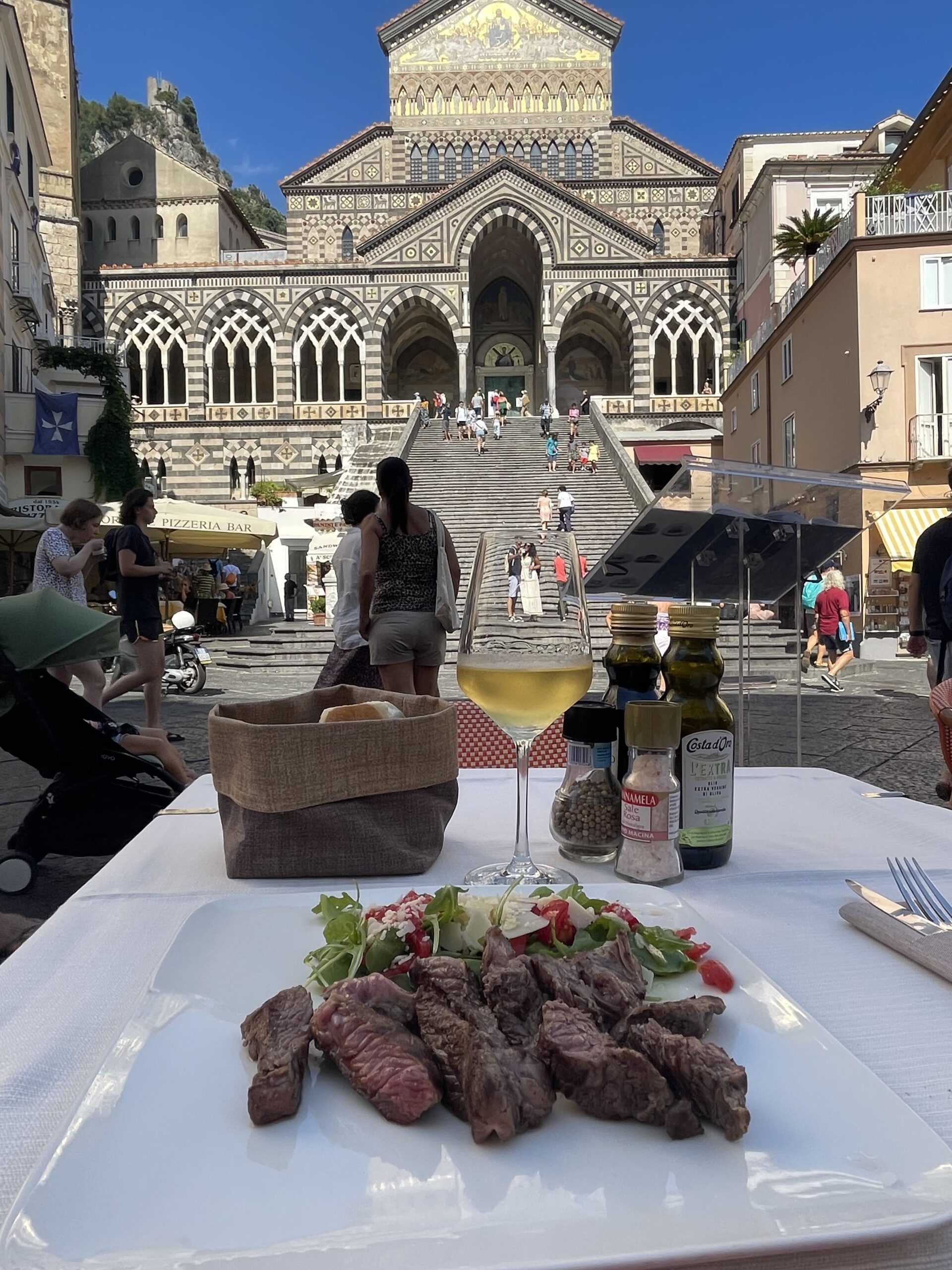 The first time I visited Amalfi, I had my “Il dolce far niente” moment—”the sweetness of doing nothing”—right in front of the Duomo. Picture this: cold white wine, perfectly cooked beef tagliata, delizia al limone for dessert, and a shot of limoncello to finish. Italians really know how to enjoy life, taking time to appreciate the small things in life.