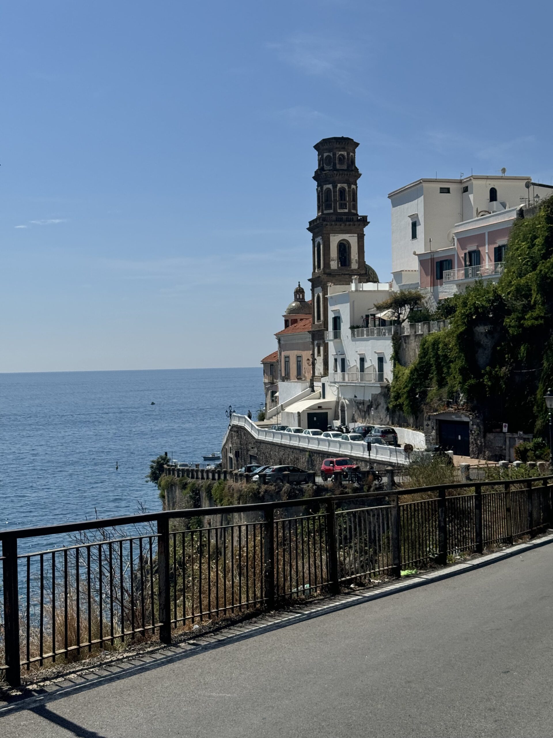 Salerno is located close to the Amalfi Coast, making it an ideal base for exploring nearby towns such as Amalfi, Positano, and Ravello. Although we didn’t spend much time exploring Salerno itself, we found it to be a charming coastal town with a lovely promenade lined with restaurants and bars. The promenade offers stunning views of the sea and mountains.